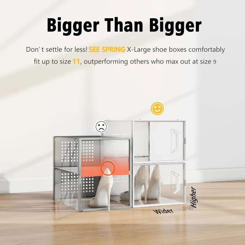 Crafted with durability in mind, these waterproof shoe storage boxes are perfect for keeping your favorite sneakers and shoes protected from dust and moisture. The transparent design allows you to quickly identify your footwear, eliminating the hassle of searching through clutter.
